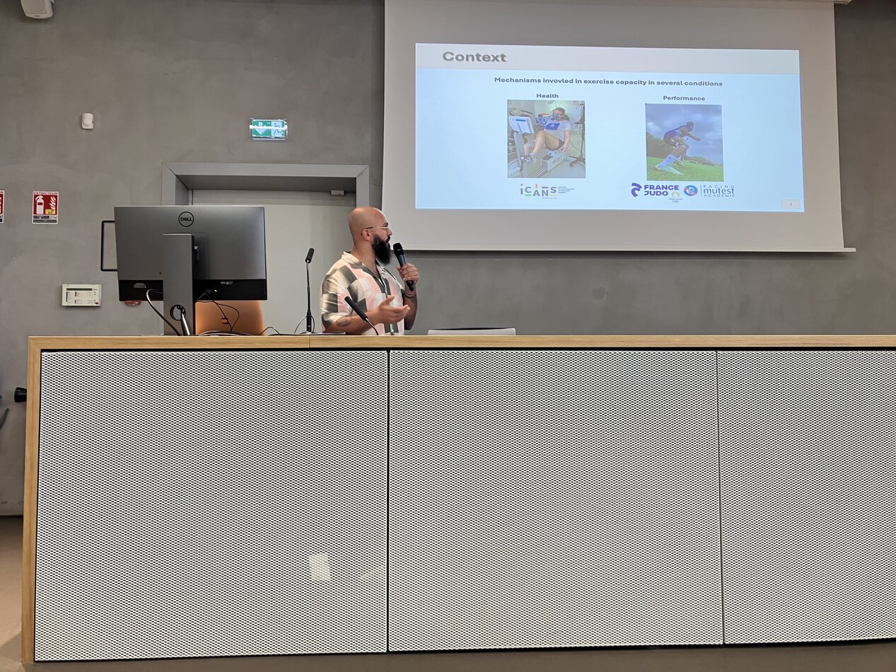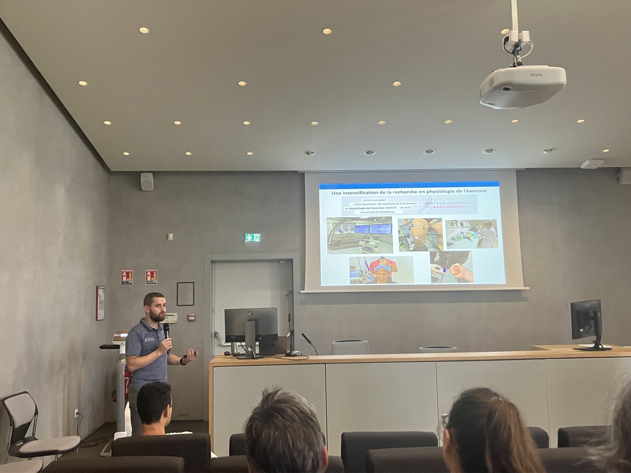 Joris Mallard, Elyse Hucteau et Anasthase Massamba ont présenté leurs travaux menés à l’ICANS et à la Racing Mutest Académie sur les mécanismes régulant la capacité d’exercice chez les patients atteints de cancers et les sportifs de haut niveau.